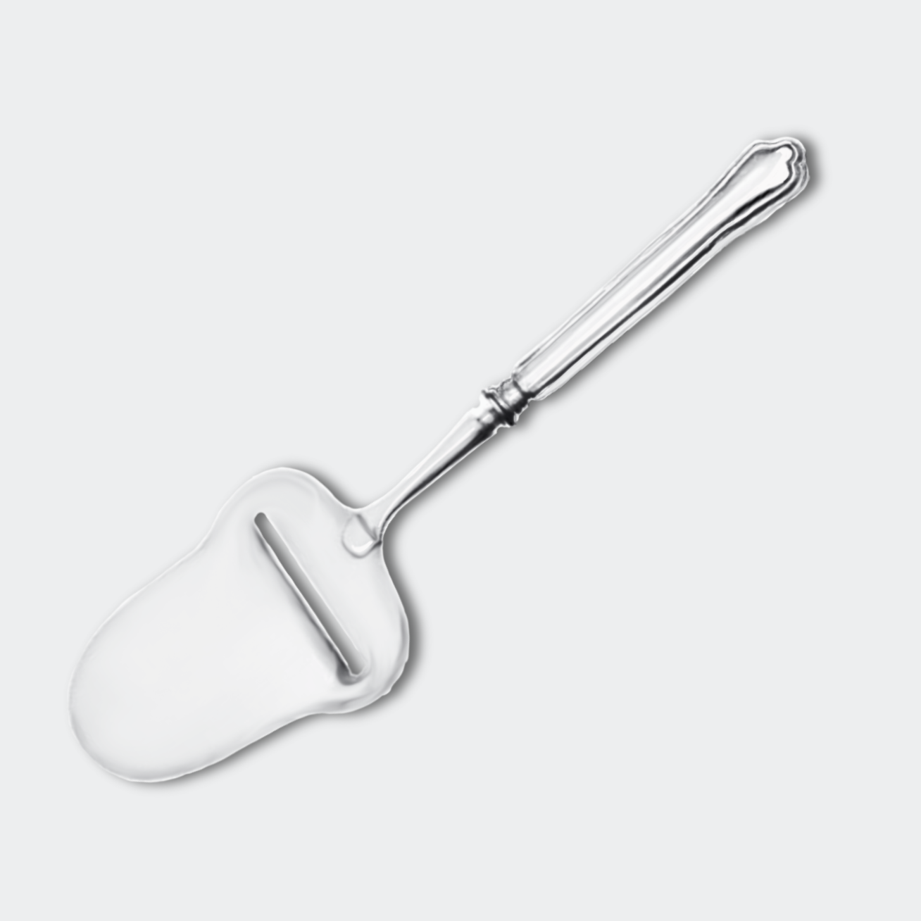 Add a stylish and timeless touch to your cheese serving with the Chippendale cheese slicer in nickel silver.