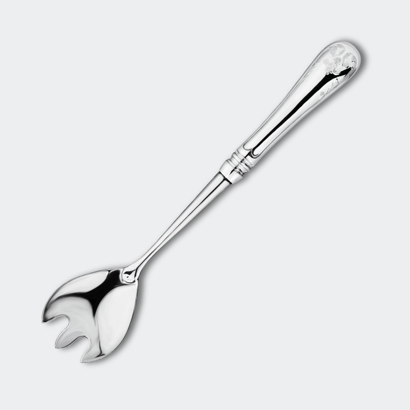 The Old French Salad Fork from Juveel is a timeless and elegant model, where the handle is adorned with the iconic French lily - a symbol of style and tradition. The combination of nickel silver handle and stainless steel scoop makes it both functional and aesthetically pleasing, perfect for festive dinners and everyday meals.