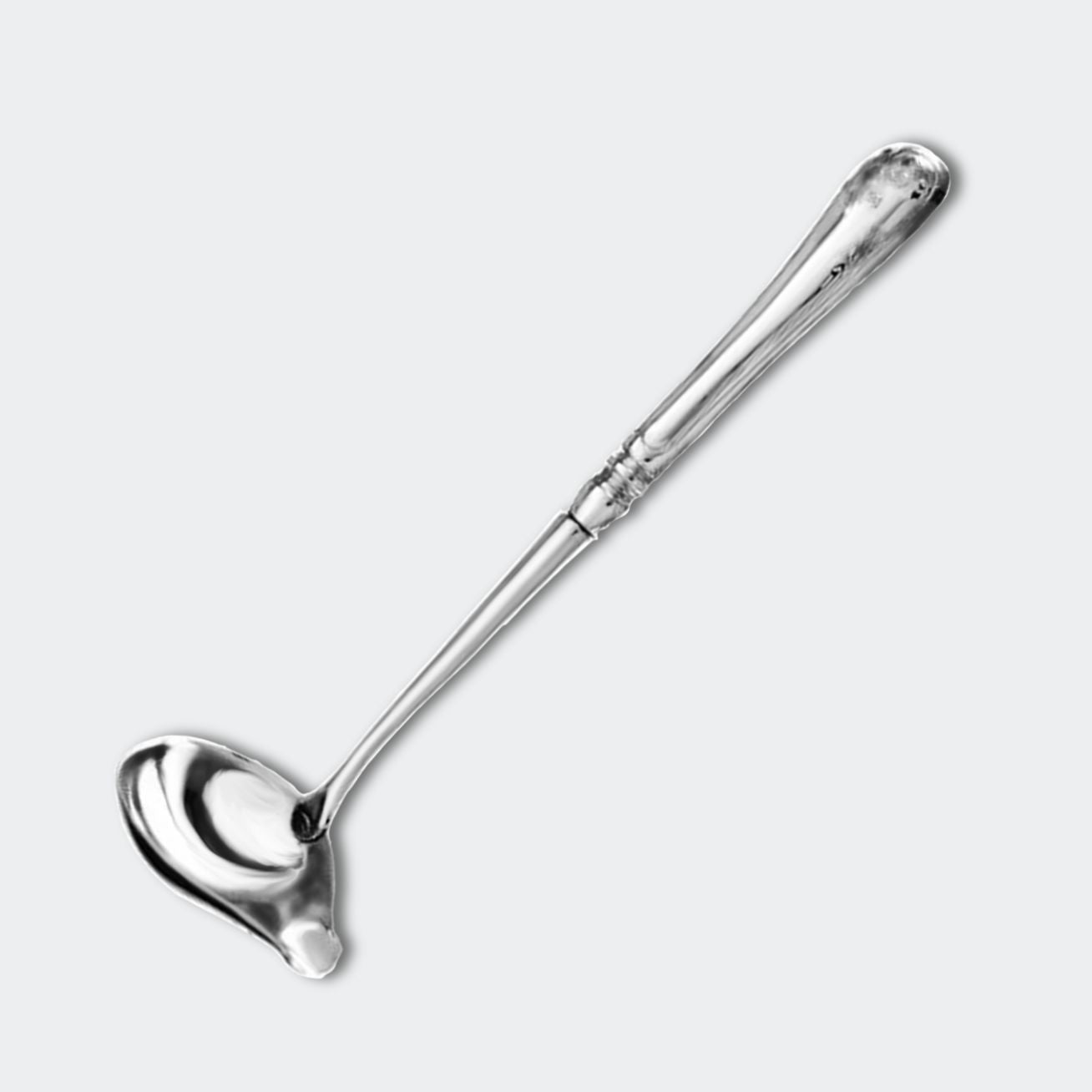 A classic sauce spoon with a silver handle and stainless steel scoop, where the French lily adorns the handle and gives a timeless and decorative feel. Perfect for lifting the table setting at both everyday dinners and festive occasions.