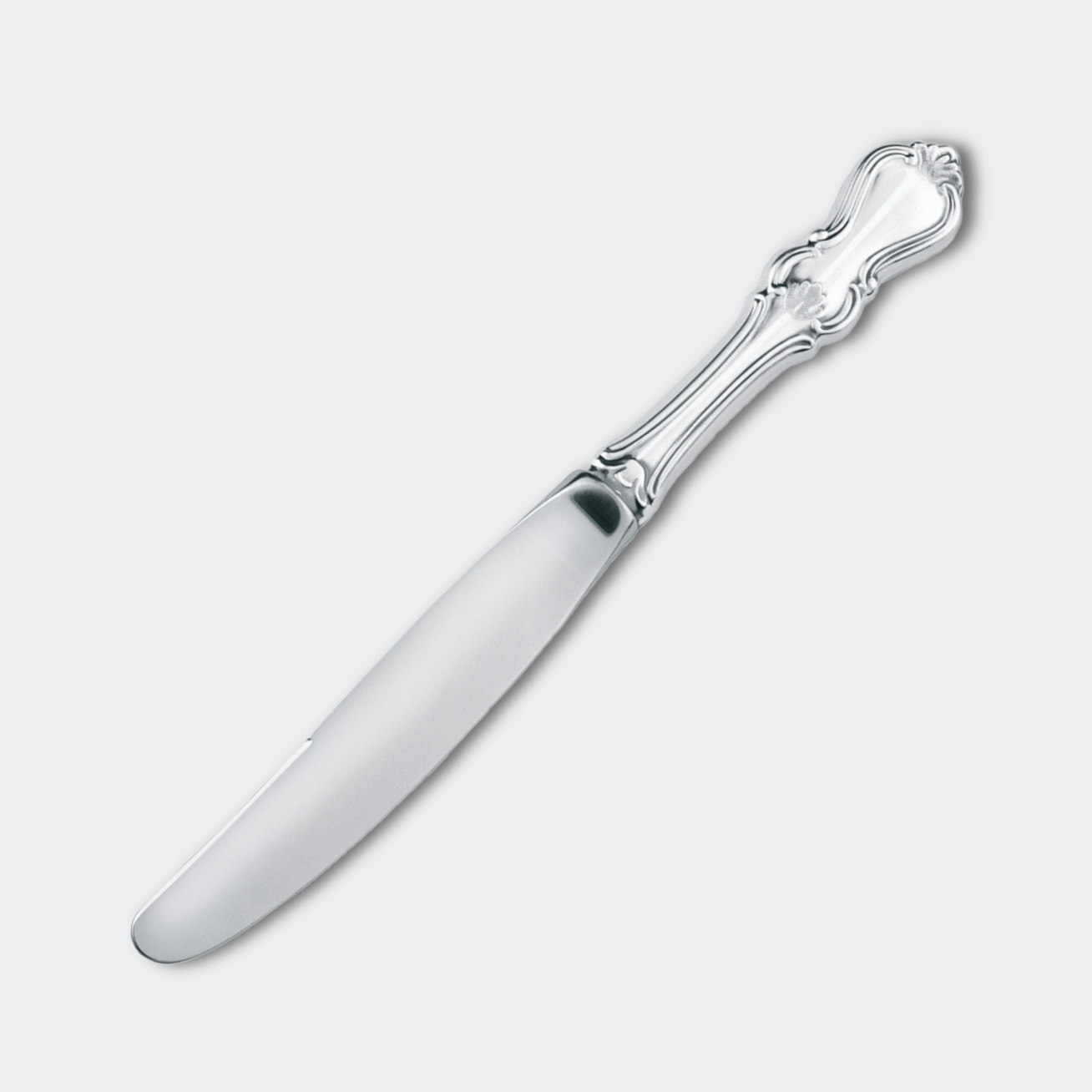 Create a stylish and romantic atmosphere at the dinner table with the Romantika table knife in silver.