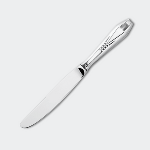 The Suomi table knife from Kultakeskus OY has a unique and detailed decoration that runs from the top of the handle all the way down. The futuristic pattern gives the knife a modern and stylish feel, while also having a timeless elegance that makes it easy to combine with different table settings.