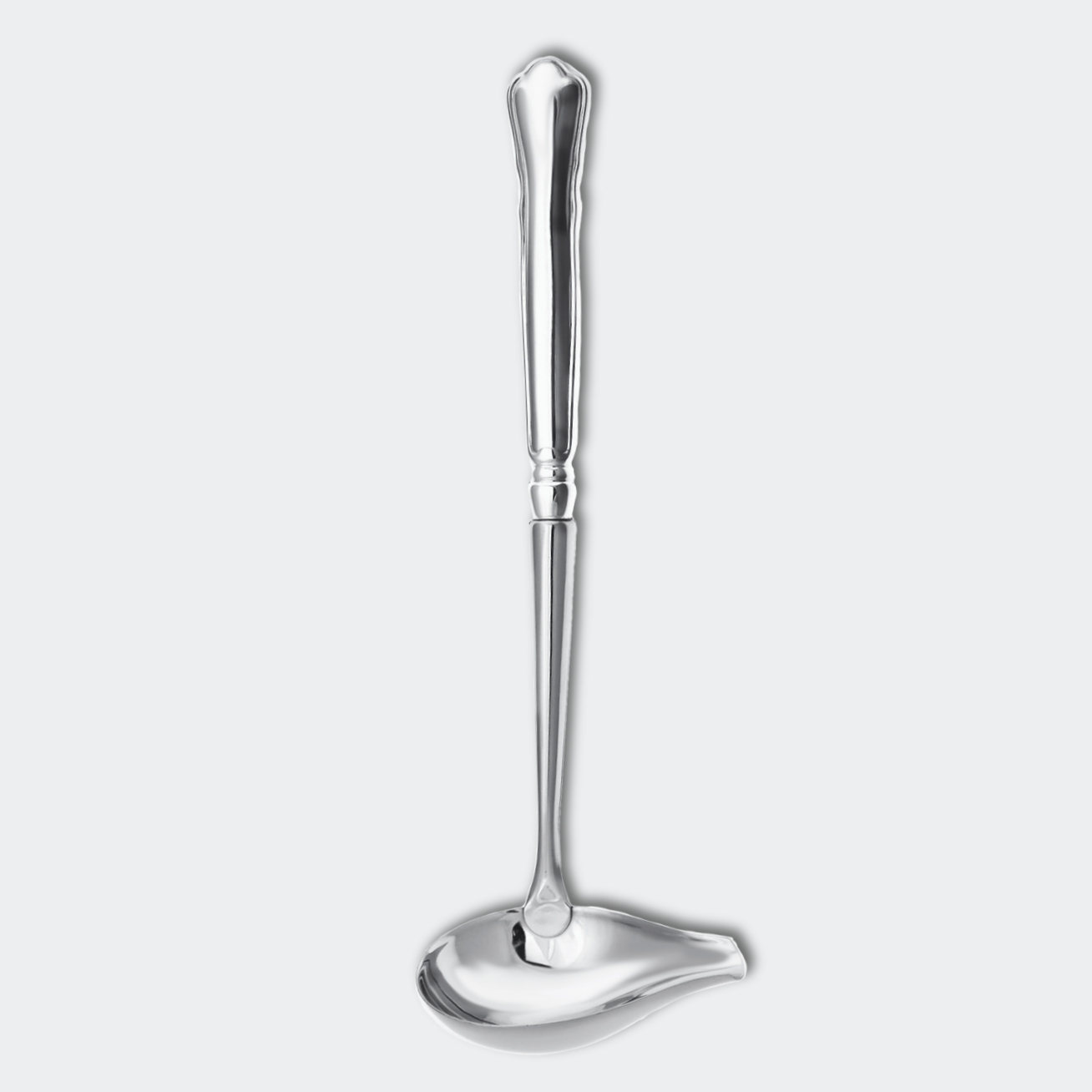 Lägg till en klassisk och tidlös touch vid serveringen med Chippendale såssked i nysilver.
