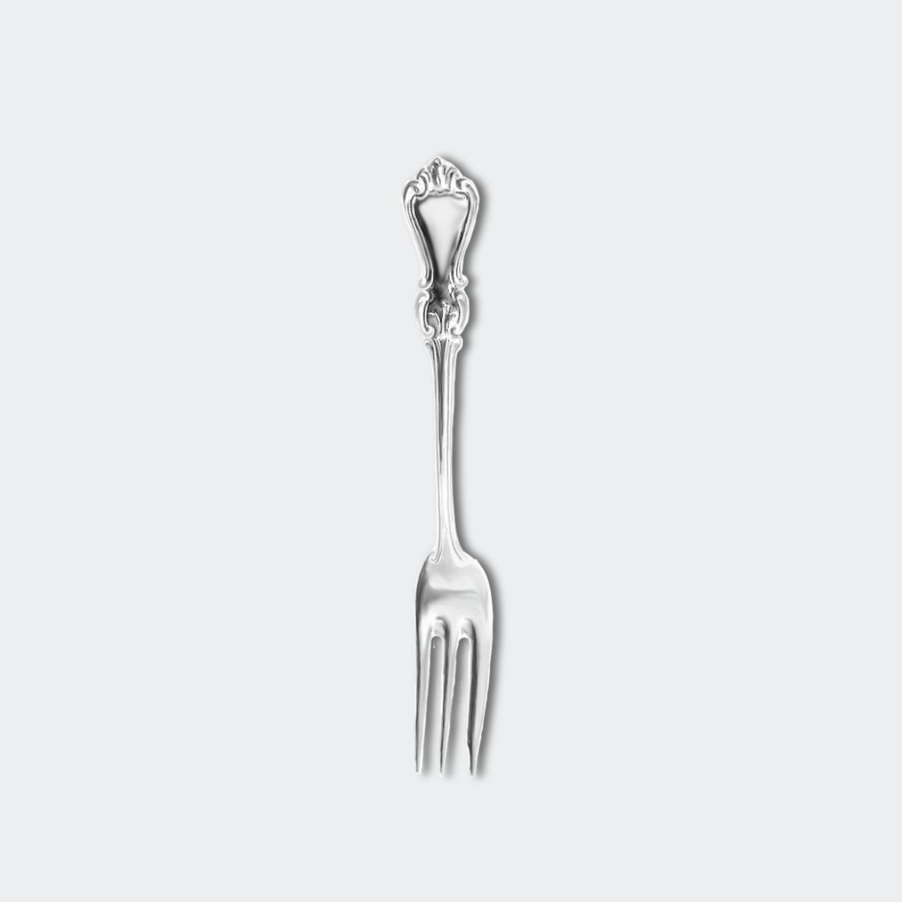 Lägg till en touch av klassisk romantik vid bordet med "Gammal" bakelsegaffel i silver.