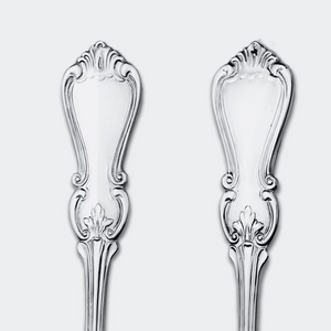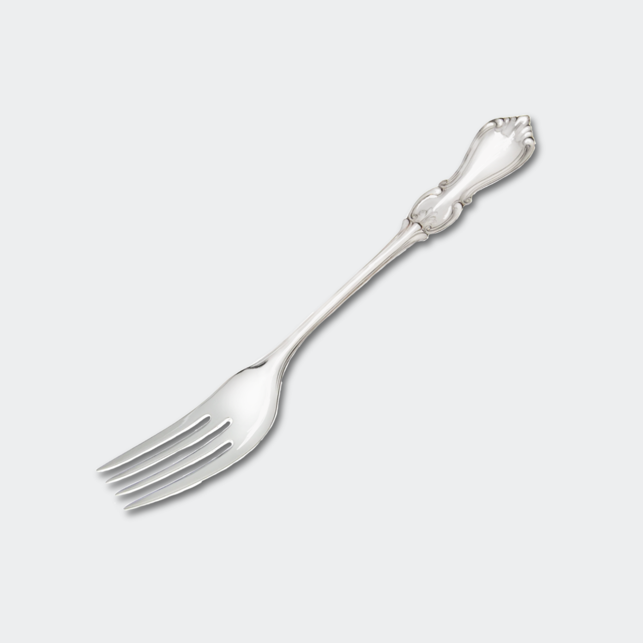 Fiskgaffel Gammal från Juveel är en vackert designad silvermodell med inspiration från rokokons mjuka och dekorativa linjer. Den klassiska formen och de eleganta detaljerna gör denna gaffel till ett perfekt val för fiskrätter vid både vardagsmiddagar och festliga tillställningar.