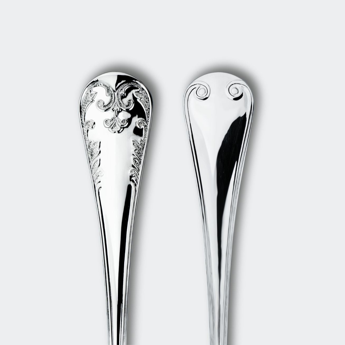 Gammal Fransk efterrättssked från Juveel är en tidlös och elegant silvermodell, där skaftet pryds av den ikoniska franska liljan – en symbol för kunglig elegans och sofistikerad design. Med sin välbalanserade form och detaljrika utsmyckning blir denna sked en perfekt detalj vid både vardagliga och festliga dukningar.