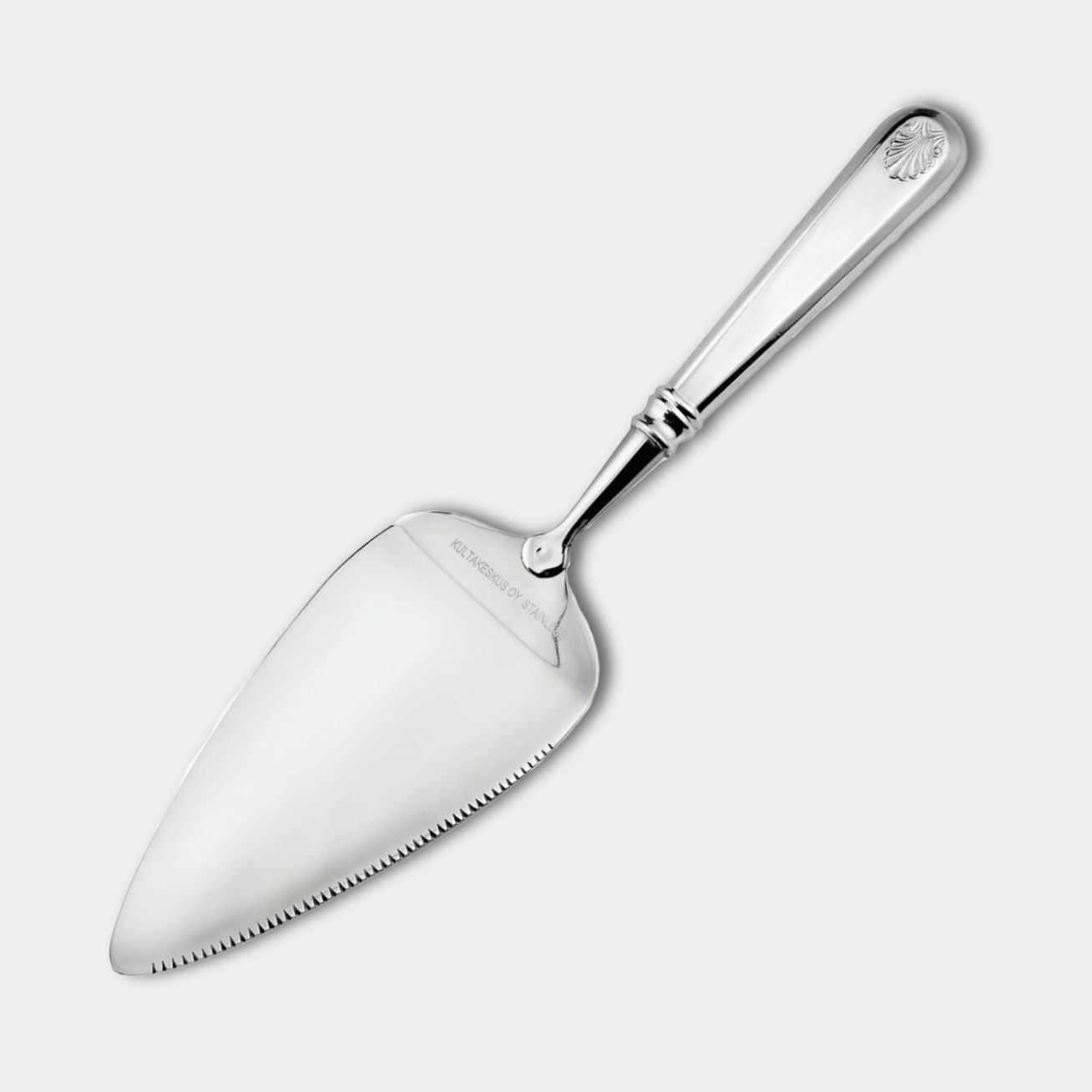 En stilfull pajspade med skaft i silver och rostfritt blad, där det vackra snäckskalet i toppen och de välsmidda linjerna ger en tidlös och dekorativ känsla. Perfekt för servering av pajer och bakverk vid både vardagsfikat och festliga tillfällen.
