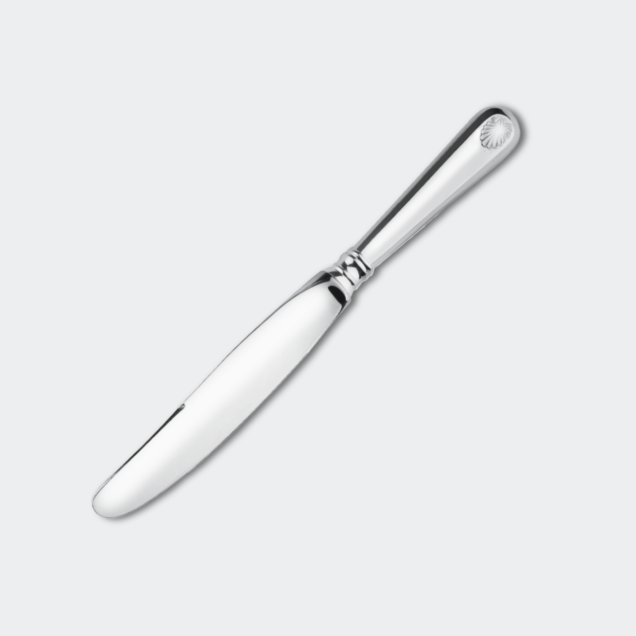 Mussla Smörgåskniv är vackert utsmyckat med ett snäckskal i toppen och har fina välsmidda linjer.