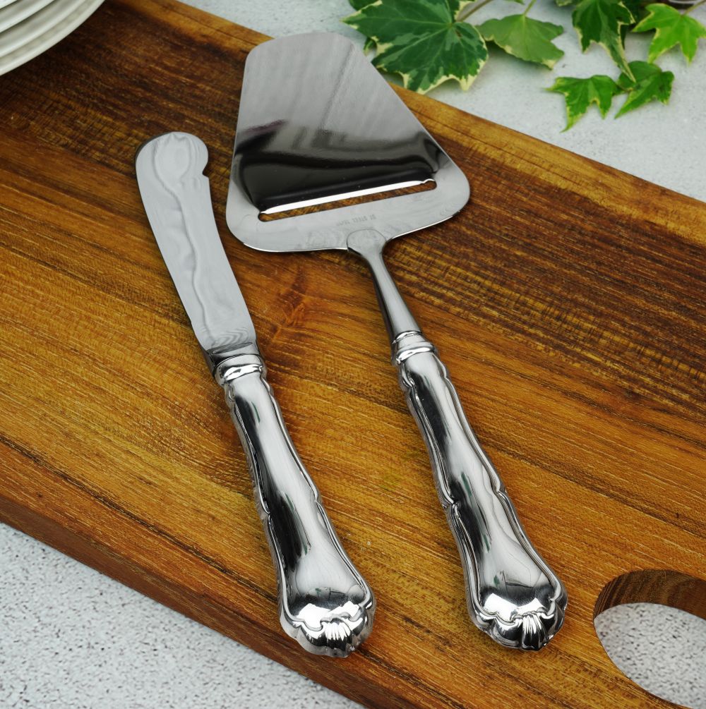 En vackert utformad osthyvel med skaft i silver och rostfritt blad, designad med den klassiska fiolformen som ger en elegant och tidlös känsla. Den ligger skönt i handen och passar perfekt både till vardags och vid festliga tillfällen.