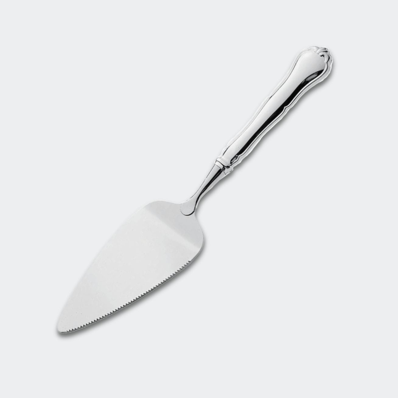 En vackert formad pajspade med silverskaft och rostfritt blad, designad med den karakteristiska fiolformen, även känd som Finsk Chippendale. Den eleganta och välbalanserade designen gör den till en perfekt serveringsdetalj vid både vardagsfikat och festliga tillfällen.