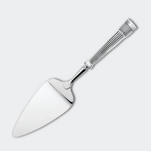 En vackert dekorerad pajspade med skaft i silver och rostfritt blad, där den präglade spannmålsdekoren ger en elegant och naturinspirerad känsla. För att framhäva detaljerna är präglingen lätt oxiderad, vilket ger en extra dimension till det utsökta mönstret. Perfekt för servering av pajer och bakverk vid alla tillfällen.